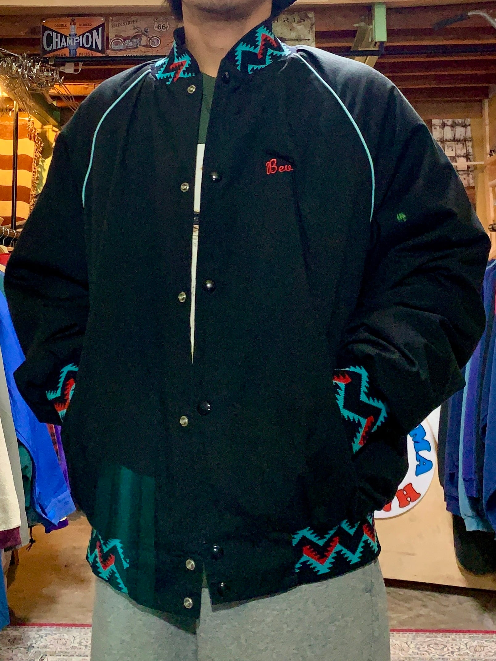 スタジャン ナイロンジャケット ネイティブ柄